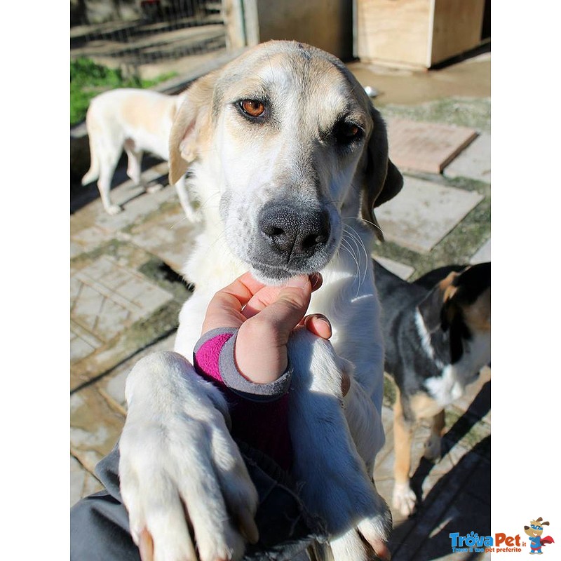 Bea femmina 3 anni taglia media (18-20kg). Espansiva, giocherellona, socievole, compatibile con cani maschi no femmine. Si trova in Calabria ma è adottabile solo al centro e nord italia (i volontari la mandano a destinazione) dopo controllo pre affido e firma del modulo di adozione vaccinata, sverminata, chippata e sterilizzata. Contattare con mail di presentazione indicando un numero telefonico mony_bro@libero.it