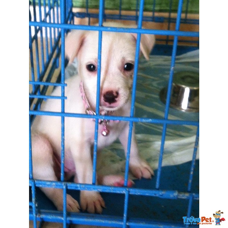 Dolce piccola Perla, ennesimo segno di inciviltà che regna sovrana qui in Sicilia..trovata abbandonata che vagava da sola..avrà circa 40/45 giorni, futura taglia piccola, tutta bianca con questi due occhioni tristi..