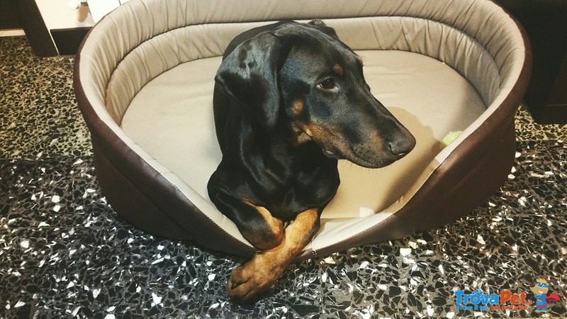 Causa problemi salutari sorti, vendesi magnifico esemplare di Dobermann femmina, 4 mesi, colore nero focato, munita di Pedigree, microchip, libretto e tutte le vaccinazioni necessarie. Carattere dolcissimo, vivace, socievole e curioso, portata all'addestramento con nozioni base già implementate via corso.