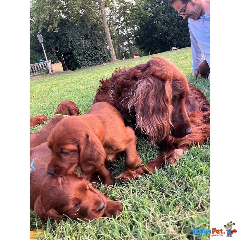 Si vendono bellissimi cuccioli di Setter Irlandese (vaccinati, sverminati, con microchip e pedigree). Saranno disponibili da Maggio 2024 (svezzamento). I cuccioli sono figli di Ulla II Della Mezzaluna e Casper Delle Dame Rosse (campione internazionale di bellezza e lavoro). Per info e prenotazioni: 3683333390 – 3492559275 – 3393682946