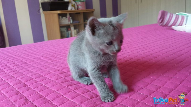 Cedesi bellissima micina razza Blu di Russia nata il 01/06/2022, taglia piccola, mantello grigio blu, occhi verde smeraldo, pelo corto, razza ipoallergica sia per pelo che per saliva. Genitori tutti e due con pedigree. Ottimo carattere, vivace e giocherellona, dolce e affettuosa, va d'accordo con bambini piccoli e altri animali, è nata e cresciuta con amore dalla nascita al momento della consegna