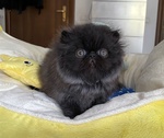 Questo meraviglioso cucciolo si chiama AnnaRita Lancillotto ed è un persiano puro maschio di colore nero. Lancillotto oltre a rispettare perfettamente lo standard di razza, ha anche un carattere dolcissimo e gode di ottima salute.