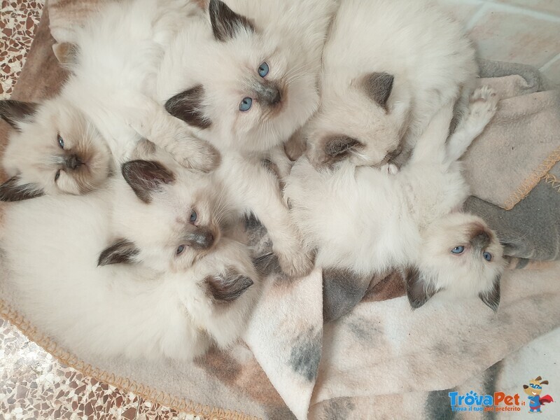 Disponibili da subito 4 bellissimi e dolcissimi cuccioli di Ragdoll. Sono tre femminucce e un maschietto, nati e cresciuti in casa, insieme ai genitori, in ambiente familiare a stretto contatto con bambini. Hanno un carattere dolce e affettuoso essendo tra le razze più docili esistenti, ideali quindi per bambini e Pet Terapy. Saranno ceduti svezzati, sverminati e abituati all'utilizzo della