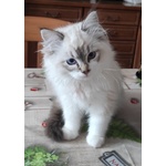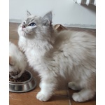 Se state cercando una splendida cucciola di Ragdoll, vi presento le nostra femminuccia disponibile dal 10 di ottobre, con doppia vaccinazione, doppia sverminatura, esente da fiv e felv, accompagnata da pedigree Enfi e test genetici negativi a HCM, PKD, PRA. Di linea purissima, ha un temperamento dolce e simpatico non solo per indole ma anche per come è stata educata fin dal primo momento di vita