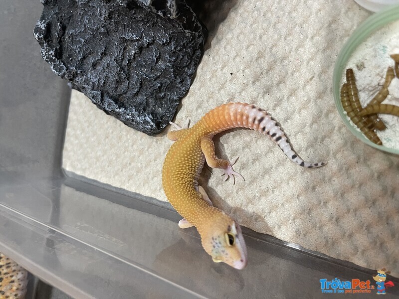 Vendo Geco leopardino maschio in ottimo stato di salute, Il geco leopardo o geco leopardino è un geco notturno della famiglia Eublepharidae che vive nei deserti non sabbiosi dell'Asia meridionale. Il suo nome deriva dal greco e significa "vera palpebra" per via delle sue palpebre mobili.